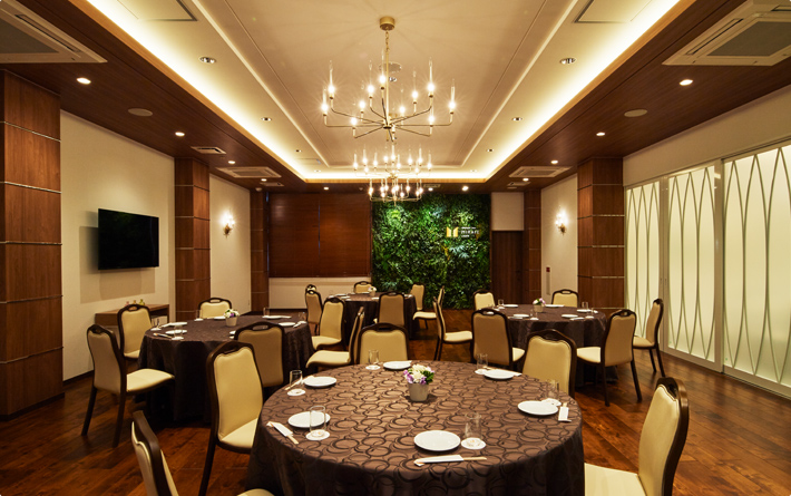 シックで落ち着いた会食空間で皆様をあたたかくお迎えいたします。ミライエ内で調理されたお料理もご堪能いただけます。